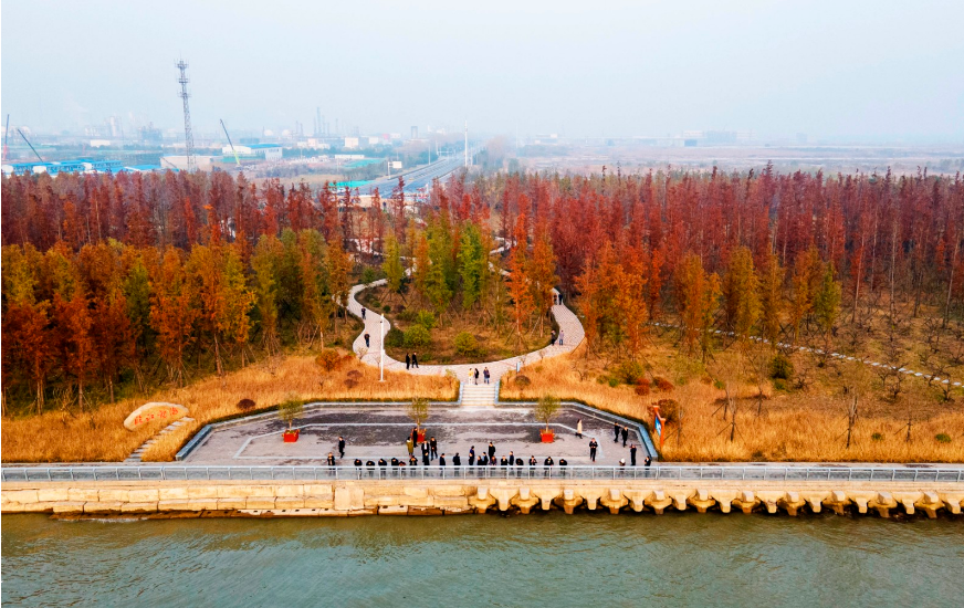 12月12日下午,與會代表們參觀江蘇泰興市長江邊的“親水棧道”。