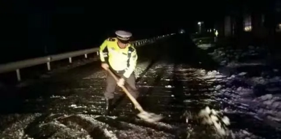 (根思中隊民警清理路面積雪)