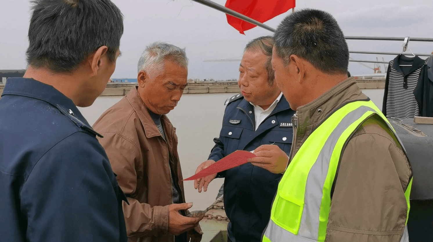 (中共泰興市委網(wǎng)信辦供圖) 每次,路過生態(tài)廊道江堤外的九曲親水棧橋,曾經(jīng)是泰興市虹橋鎮(zhèn)養(yǎng)魚大戶的朱青海都會(huì)在橋上停留一會(huì)兒欣賞美麗的江景,眼里透露著說不出的滿足和欣喜,不禁為當(dāng)初自己響應(yīng)政府“退漁還濕”的選擇喊“值” ! 美麗的長江,不僅激發(fā)了岸上養(yǎng)魚戶的保護(hù)欲,還激發(fā)了退捕漁民的守護(hù)責(zé)任。 “快來看,江上有情況!”10 月 29 日中午 11 點(diǎn) 20 分,泰興市長江禁捕綜合執(zhí)法基地內(nèi),隨著技防視頻監(jiān)控員一聲喊,周國華等 5 名護(hù)魚員迅速整理裝備,蓄勢待發(fā)。