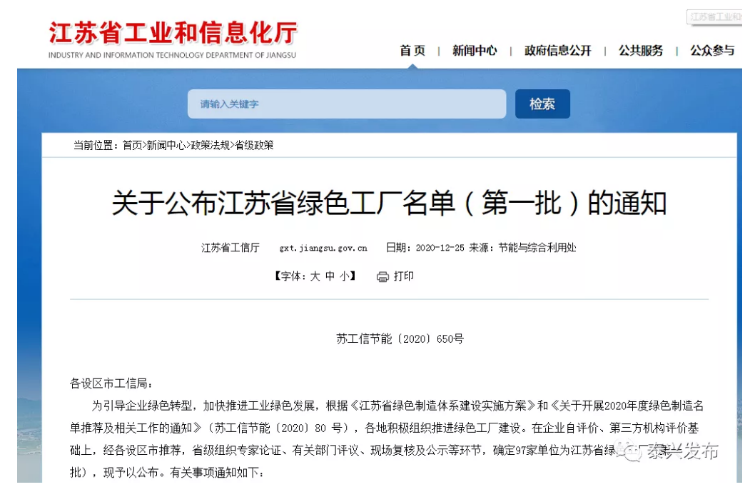 日前,省工信廳公布了江蘇省第一批綠色工廠名單。