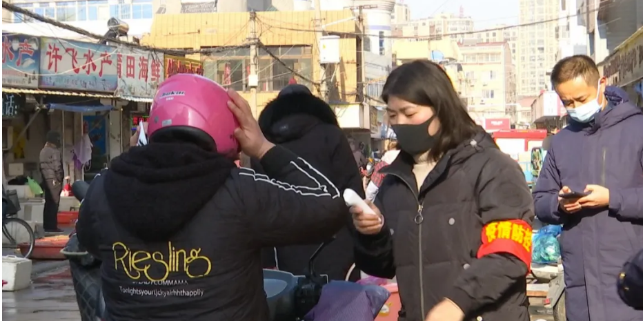 除新區菜場外,荷花池農貿市場也是市場監管局監管的重點。作為城區一個半開放式菜場,荷花池農貿市場共有大小出入口16個。為加強疫情防控,市場主辦方加大出入口封閉力度,僅保留了4個主要出入口。為增強市場防控力量,市場監管部門增派15名工作人員,在4個出入口設置疫情防控崗,加強人員測溫。