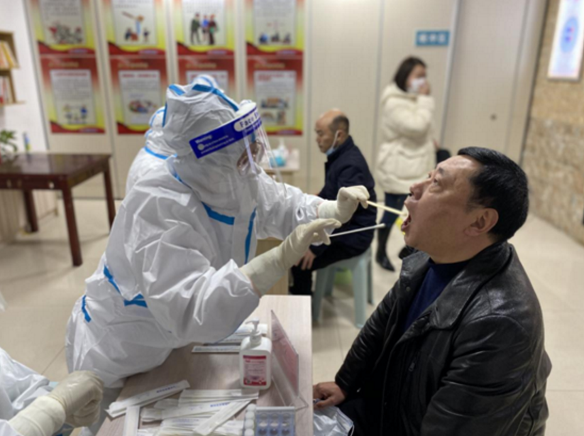 登記環節:待檢人員在工作人員的引導下,掃描“健康碼+行程碼”,體溫測量、做好身份信息登記后,憑工作人員提供的核酸檢測試劑進入采樣區,按照規范進行咽拭子采樣。