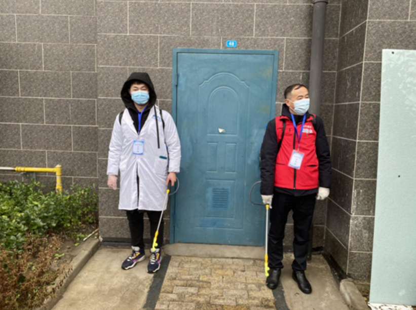 ●消殺組對該病例所住房屋進行全覆蓋消殺,對樓棟內全部空間尤其是電梯、公共樓道、把手進行不留死角的消毒;