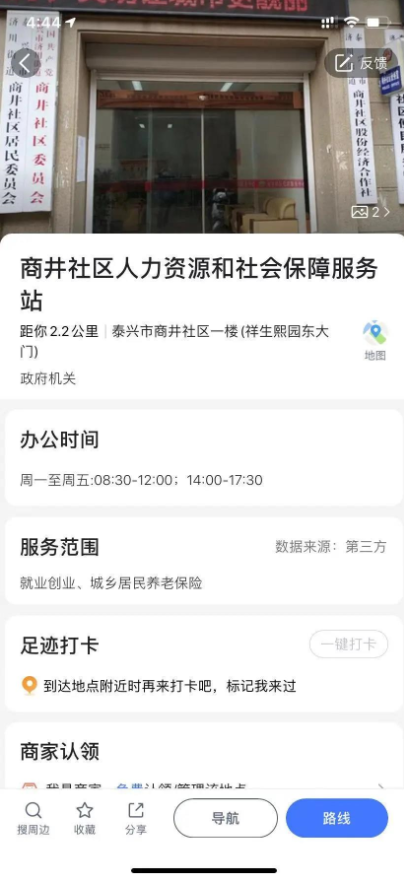 戴先生獲取社區人社服務站地點的通道為泰興“人社電子地圖”。為更好的服務辦事群眾、提供更為貼近有效的服務功能,近日,泰興市人社局推進“智慧就業地圖”再升級,在高德地圖開通泰興“人社電子地圖”,現已完成對全市16個鎮街人社服務平臺和350個村(社區)人社基層服務平臺完成數據采集工作,正式上線使用。