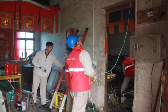 (2021年3月18日下午,公司志愿服務隊聯合市民政部門工作人員,來到元竹鎮申莊村的困難家庭孫仁德家,為他家老舊照明線路、開關進行升級改造。) |