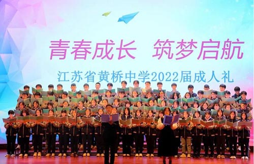 2.江蘇省黃橋中學 4月6日下午,江蘇省黃橋中學舉行了“青春成長,筑夢啟航”十八歲成人禮活動。