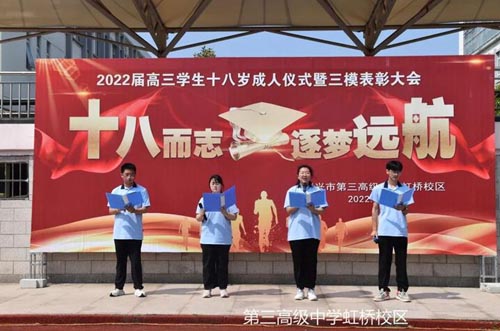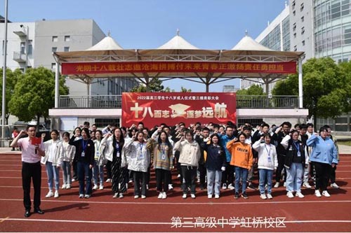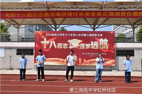 學生宣誓 4.泰興市第三高級中學虹橋校區 5月9日上午,泰興市第三高級中學虹橋校區舉行了簡樸而溫馨的十八歲成人禮。