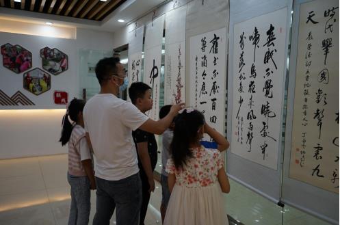 為迎接黨的二十大勝利召開,培養青少年的愛國情懷。8月15日下午,在延令街道越街社區新時代文明實踐站,社區書法愛好者和文藝志愿者們,開展了一場以“喜迎二十大”為主題的書法展活動。 書法愛好者們精心選送了一批書寫熱愛家鄉、熱愛祖國的書法作品進行了集中展示。越街社區實踐站邀請轄區部分青少年參觀了書法作品,書法老師帶領小朋友們欣賞一幅幅作品,每件作品主題鮮明、風格多樣,各展藝術之長。