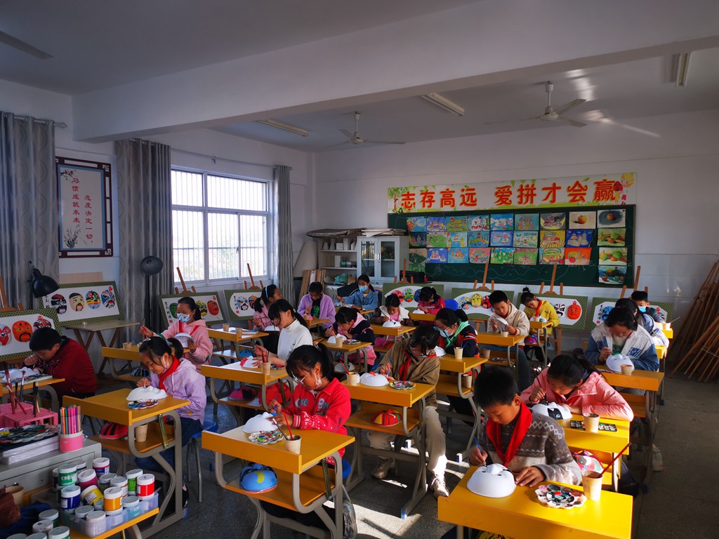 為扎實(shí)推進(jìn)鄉(xiāng)村學(xué)校少年宮建設(shè),泰興市常周小學(xué)挖掘本校特色,因地制宜開設(shè)文體娛樂課程,“京劇臉譜勾畫”應(yīng)運(yùn)而生。“京劇臉譜勾畫”興趣小組由一群愛好京劇藝術(shù)、愛好繪畫的的孩子們組成,現(xiàn)有成員三十多名,以學(xué)校美術(shù)室為主要活動(dòng)場(chǎng)地,每周五下午開展活動(dòng)。在活動(dòng)中,輔導(dǎo)老師徐老師帶領(lǐng)同學(xué)們認(rèn)識(shí)京劇臉譜,通過臉譜欣賞,感受臉譜藝術(shù)的美感。了解戲劇臉譜的造型規(guī)律和藝術(shù)特色,同學(xué)們利用彩色筆、顏料在空白面具、扇面等上面進(jìn)行描邊和上色。在徐老師的指導(dǎo)下,同學(xué)們盡情地發(fā)揮想象力和表現(xiàn)力,用不同的方法設(shè)計(jì)一個(gè)有特色的臉譜,創(chuàng)作出自己滿意的作品。通過活動(dòng),同學(xué)們對(duì)京劇臉譜藝術(shù)有了更深的了解,繪畫的技能和創(chuàng)新的能力得到了提升。