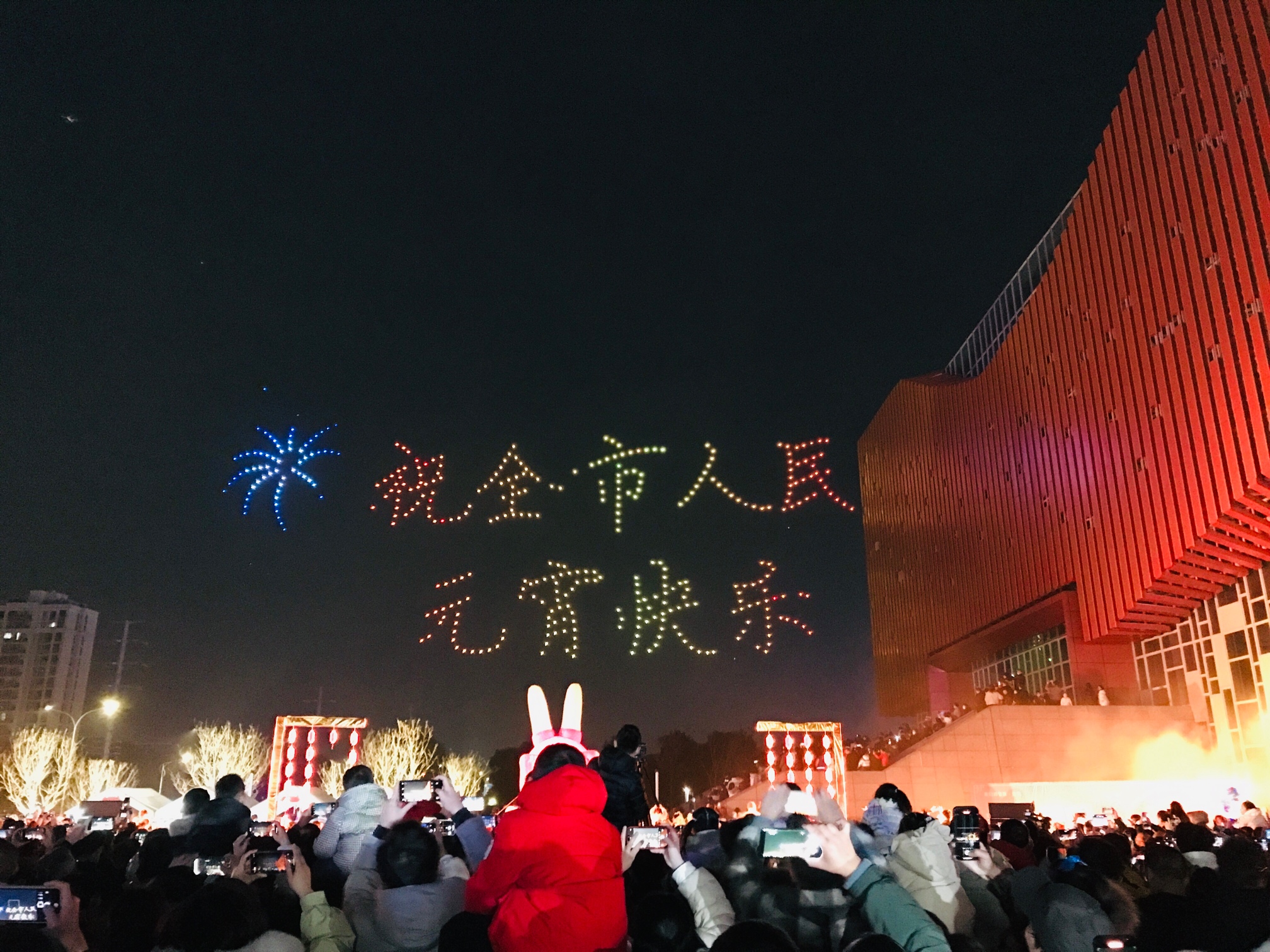 蒼穹做“幕” 科技為“筆” 以天為幕,以城為景,閃耀夜空。500架無人機集群表演為市民帶來震撼的視覺盛宴,點亮了泰興的夜空。此次無人機編隊表演是泰興首次大規模無人機演出,19:30整,無人機呼嘯而起,一場以光影焰火為筆、城市夜空為紙,縱橫交錯,輝映天空,卷變出“青春泰興 就這young”“元宵快樂 大展宏兔”等文字圖案,極具煙火氣息的視覺盛宴綻放全城,展示了泰興大地氣象萬千、蓬勃向上的新氣象,營造出熱鬧喜慶、辭舊迎新的濃厚氛圍,繪就了“魅力高新 幸福姚王”新時代美麗畫卷。