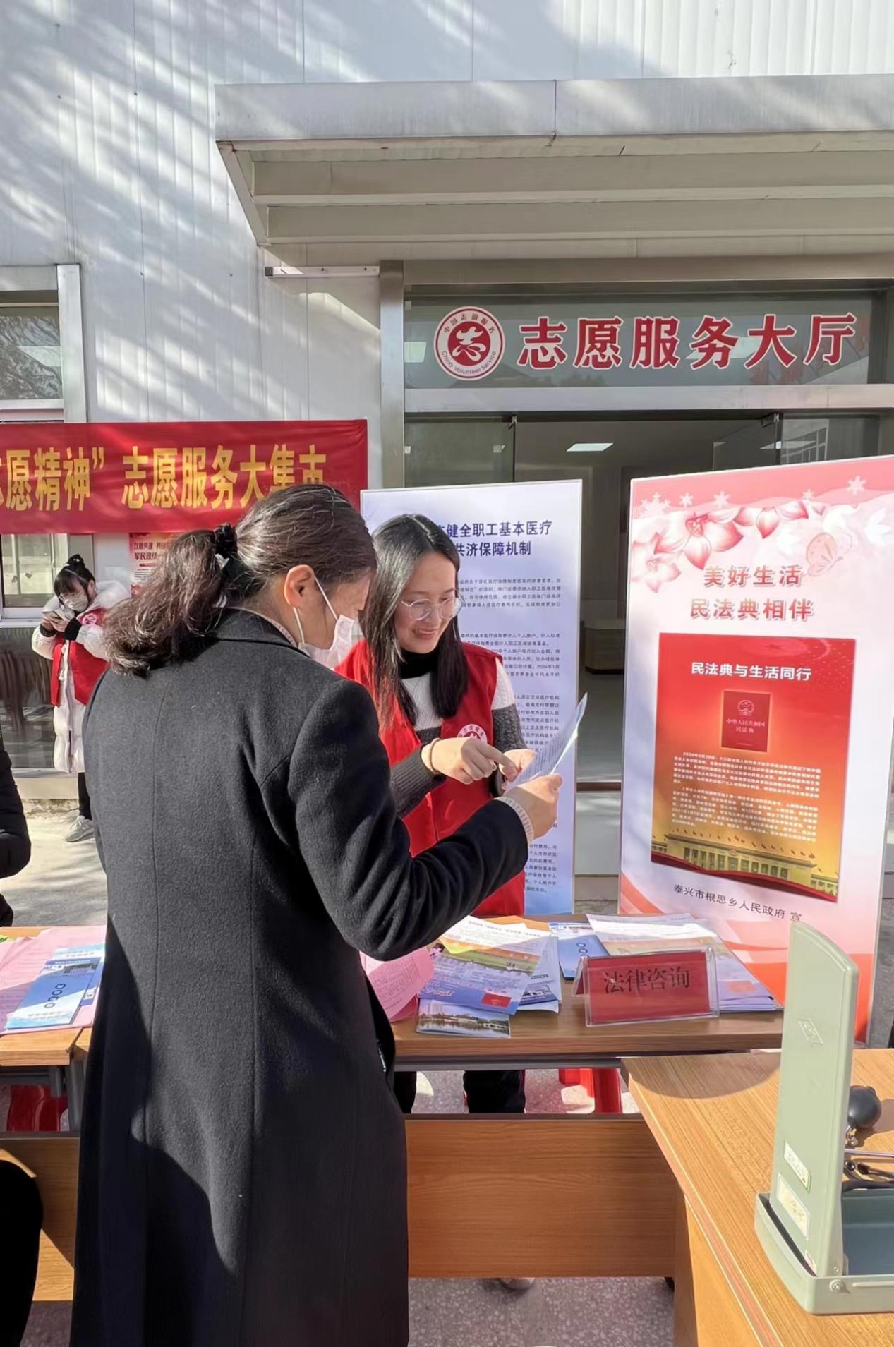 為深入學習宣傳貫徹黨的二十大精神,增強群眾法治意識,加大《民法典》在廣大人民群眾中的宣傳和學習力度,2月17日,泰興市“泰有愛”志愿服務總隊在根思鄉新時代文明實踐所開展“送法進萬家 民法典相伴”法律知識普及志愿服務活動。