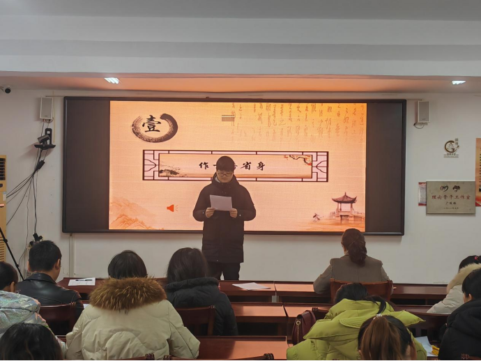 三省己之過,經典激斗志。“作為一名黨員干部,是否時時處處真誠處世、以誠待人?是否時時處處熱情服務、愛崗敬業?是否遵紀守法、坦蕩無私?”隨著主持人劉建成的提問,參會人員認真反躬自省。一曲《感恩的心》、一首《無題》,感染和激勵參會者立足崗位甘于奉獻,做一個愛國奮斗的有志青年。
