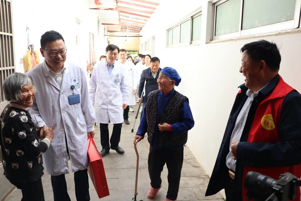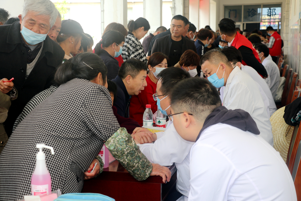 4月16日上午,醫療專家志愿者們在溪橋醫院進行廣場義診,骨科、精神科、呼吸科、皮膚科、甲乳科、消化科、感染科等22個科室主任為老區百姓問診,共接待求醫百姓超過500人次。