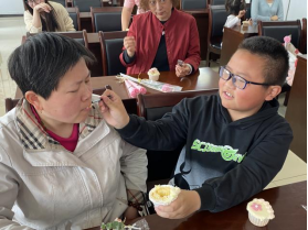 接下來是給媽媽獻(xiàn)花環(huán)節(jié),孩子們向媽媽送上母親節(jié)祝福并說出自己的心里話,媽媽們都非常感動(dòng)。同時(shí)我們社工站也為孩子和家長(zhǎng)準(zhǔn)備了節(jié)日蛋糕一起享用,孩子們不約而同將第一口蛋糕都喂給了媽媽,每個(gè)人的臉上都洋溢著溫馨、幸福的微笑;顒(dòng)結(jié)束后,家長(zhǎng)們紛紛表示:“活動(dòng)促進(jìn)了親子之間的互動(dòng),拉近了親子距離,非常有意義。”