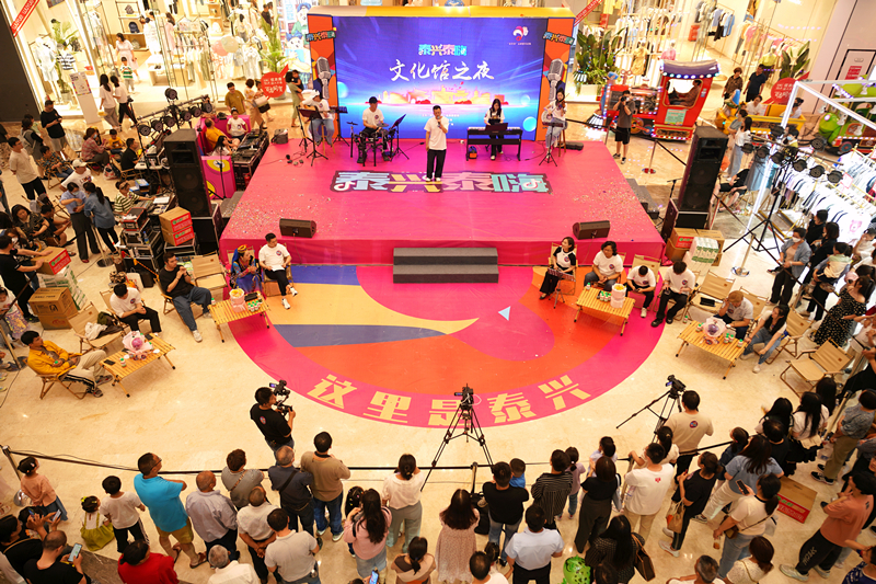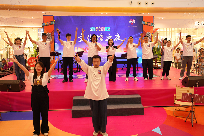 活動(dòng)現(xiàn)場30余名來自文化館的歌手、樂手、舞蹈演員為廣大市民帶來了一場精彩快閃表演。演員們載歌載舞,現(xiàn)場表演了街舞《泰興人》、歌曲《幸福中國一起走》等節(jié)目,展現(xiàn)出新時(shí)代泰興的青春活力