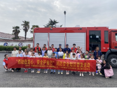 活動現場,消防員將消防裝備器材一一展示出來,為孩子們介紹其性能及使用方法,同時通過一個個真實生動的火災案例,深入淺出的講述了消防安全的重要性,重點闡述了防火、滅火、逃生、自救等方面的安全知識。隨后,消防員帶領大家參觀消防救援車輛,用淺顯易懂的語言介紹了消防車上的儲水罐、高壓水槍、滅火器等器械,讓孩子們對消防車有了更加直觀的了解。“哇,消防車好大呀!”“原來,消防車能裝這么多用具!”第一次接觸消防車的孩子們都興奮不已。