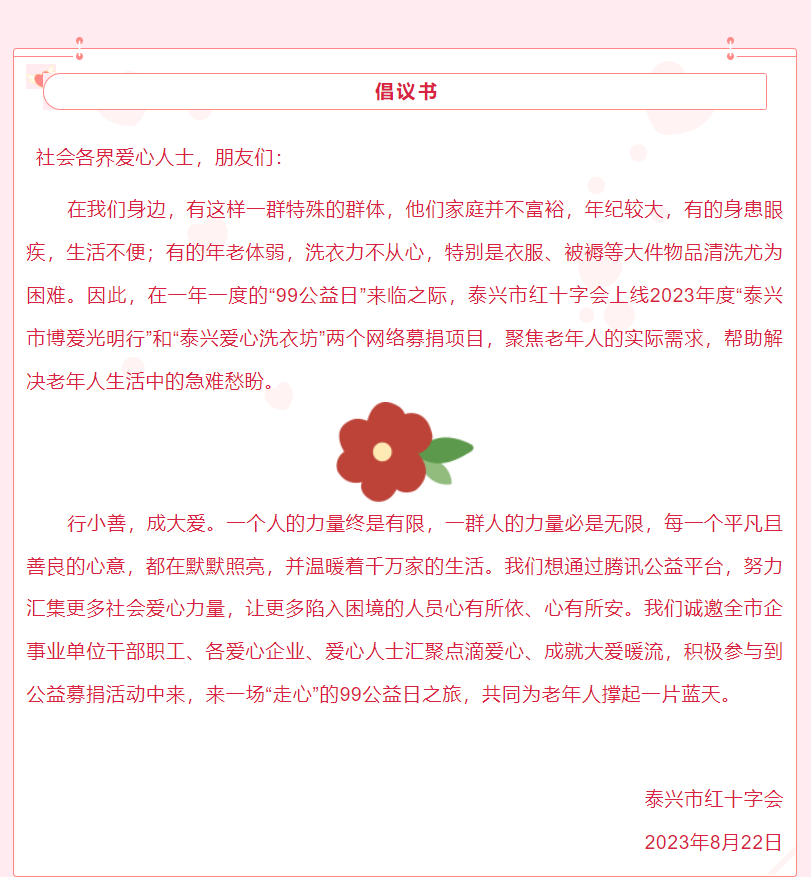 【99公益】泰興市紅十字會邀您“一塊”做好事