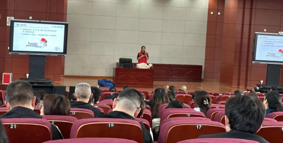 活動現場,志愿者從應急救護醫療基本常識、模擬演示心肺復蘇術的操作和AED使用(自動體外除顫器)等方面為師生帶來了詳細的講解。“心搏驟停時,每延遲急救一分鐘,成功率就下降10%!”志愿者結合典型案例說明急救的重要性,并利用人體模型進行了現場施救操作演示,讓教師直觀感受到學會心肺復蘇急救方法的重要性。