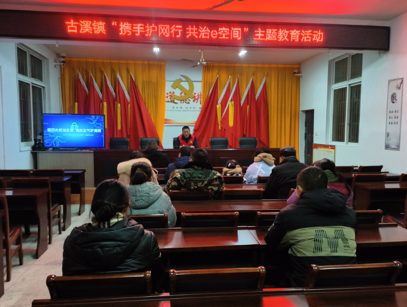 網絡信息人人共享,網絡安全人人有責。為進一步倡導居民參與網絡共治,提升網絡素養,提高公眾對網絡舉報的認知度和參與度。古溪鎮圍繞“攜手護網行·共治e空間”主題,開展系列網絡舉報宣傳活動,增強群眾網絡安全防護意識,筑牢網絡安全防線,營造文明上網氛圍。 一是開展“猛藥去疴治亂象 清風正氣護清朗”主題教育活動。活動現場,通過PPT演示、現場播放網絡舉報主題宣傳視頻的形式,向居民群眾普及展示了網絡舉報的相關知識和流程,為大家提供更加全面、專業的網絡安全服務信息。發出依法上網、文明上網、安全上網、理想上網的倡議,得到群眾的一致響應。