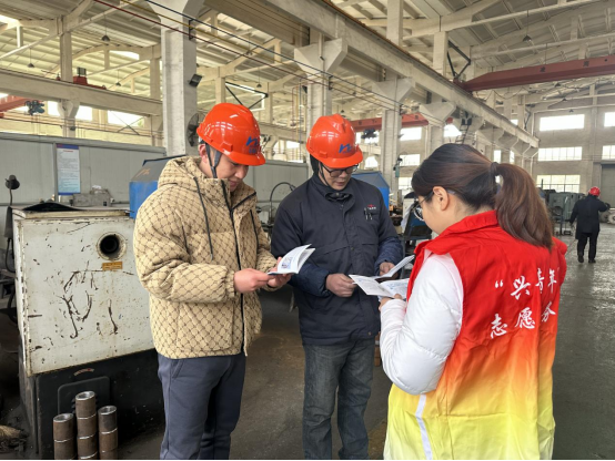 隨后,“興青年”志愿者在廠區醒目位置張貼海報,并向企業職工發放《網絡安全宣傳口袋書》,結合案例詳細講解常見涉企網絡侵權有哪些行為,如何舉報涉企網絡侵權信息等基本知識,幫助企業及職工掌握維護自身合法權益的方法途徑,進一步提高對網絡侵權信息的防范意識。