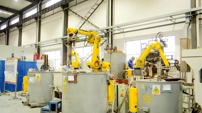 走進黃橋經濟開發區華星機電活塞加工智能制造車間,全自動加工線、全自動焊接線高速運轉,機械手臂靈活揮舞、迅捷抓取產品。華星機電主要生產發動機活塞,擁有國內領先的活塞自動澆鑄設備、機械加工設備、活塞檢測設備和發動機實驗室。活塞車間擁有智能化設備共計56臺,實現了設備聯網、遠程監控,成功入選2023年度省級智能制造示范車間。 “智能化改造之前,我們平均一條線要用3到4人,改造之后平均只要1人,整體生產效率、產品質量都得到大的提升和改善。”江蘇華星機電制造有限公司總經理王宏表示。