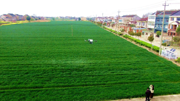 物聯網引領,智能農機+大數據采集,讓田間管理更加精準高效。在張橋鎮褚陳村高標準測試方田塊,種植大戶呂領恩收到田間智慧蟲情及氣象設備發出的信息后,隨即使用高效無人機對田塊開展水肥作業。該設備具備自動采集、分析、上報田情墑情功能,相當于為田間地頭裝上了“智慧大腦”,讓數據為傳統種植賦能。目前,泰興市共有10臺農作物害蟲智能性誘監測設備、2臺自動蟲情監測設備、2臺智能蟲情測報燈。“以前我們都是靠自己的經驗,現在有了這個設備,更方便了,治蟲害更精準了,小麥長勢很好。”張橋鎮褚陳村種植大戶呂領恩說。