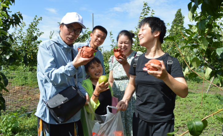 泰興市新街鎮樂呦家庭農場是兩鎮攜手、溫情助殘的第一站。雖有臺風侵擾,但在碩果累累的梨園里,高溫酷暑的余威猶在。在農場技術人員的指導和志愿者陪護下,兩鎮殘疾人兄弟姐妹興高采烈地尋覓、挑選、采摘,滿心歡喜地品嘗著自己親手采來的果實。泰興市虹橋鎮蔣華村黨總支副書記張文學高興地說,今天參加活動的大都是他們村的精神障礙患者,平時對于外面的世界幾乎一無所知。這次活動讓他們接觸到了豐富多彩的大自然、感受到了勞動的快樂,更為重要的是,也讓殘疾人群體感受到了收獲的喜悅和生活的美好。
