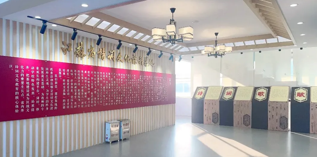 走進泰興市第一高級中學的省詩詞文化課程基地,隨處可見詩詞文化石、依景而設的詩詞扇牌、曲徑通幽的楹聯長廊……處處洋溢著詩韻文化。 “江蘇省詩詞文化課程基地”座落于該校思賢樓。在詩詞研究室,你可以博覽詩詞、對話大師、啟迪心智;在詩詞表演室,你可以研習經典、表演吟唱、神入漢唐;在詩詞創作室,你可以放飛靈感、文思泉涌、寫詩作賦…… 泰興市一高詩詞文化課程基地建設的成果,只是泰興市整體推進學校課程建設的一個縮影。自2011年江蘇省啟動實施中小學課程基地建設項目以來,泰興市高度重視,以課程基地的建設助力教育內涵發展,服務新時代教育實踐,全面優化區域育人生態。