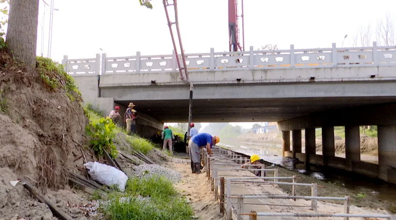 在泰興市羌溪河南段整治工程現場,工人們正在對河道進行排水、清淤、筑堤,加快推進施工進程。針對羌溪河部分河段存在河道淤積、岸坡坍塌、水土流失等問題,計劃整治疏浚河道8.4公里,新建護岸15公里。項目完工后,河道排澇標準將達到20年一遇,保護人口44.27萬,保護耕地4.94萬畝。