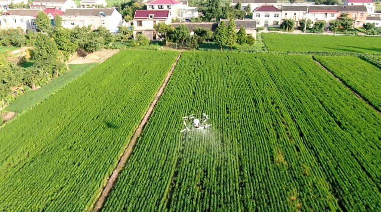 9月21日,在虹橋鎮(zhèn)六圩村糧食種植專業(yè)合作社萬(wàn)畝高標(biāo)準(zhǔn)良田里,種田大戶正在實(shí)施無(wú)人機(jī)飛防作業(yè)。“像這樣的多臺(tái)無(wú)人機(jī)同時(shí)編隊(duì)作業(yè),在幾年前,還是稀奇事兒,但現(xiàn)在,在配套完善的高標(biāo)準(zhǔn)農(nóng)田上開(kāi)展全程飛防作業(yè),已經(jīng)成為最尋常的事。”業(yè)主陸友章介紹,“所施用的肥料和農(nóng)藥,是依據(jù)泰興市植保站和惠農(nóng)公司統(tǒng)一配制的,這樣能夠防止肥料流失和土壤板結(jié),進(jìn)而改善土壤。”合作社還將周邊11家有飛防技術(shù)的家庭農(nóng)場(chǎng)納入體系,實(shí)現(xiàn)田情統(tǒng)一管、農(nóng)技統(tǒng)一用。