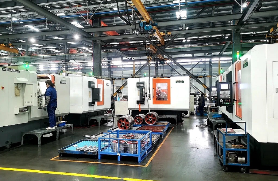 排布設備升級“一盤大棋” 在“兩新”熱潮涌動之下,作為工業強市的泰興,企業成為設備更新的核心力量。該市全面梳理工業領域的設備更新和技術改造項目,并逐步有序推進。截至目前,已有197個項目被納入工業設備更新改造項目儲備庫,計劃總投資達612.5億元,實際已完成設備更新2438臺(套)。 眾多設備制造企業果斷淘汰舊產能,加速產業迭代步伐。踏入江蘇泰隆減速機股份有限公司,一片繁忙景象映入眼簾——紅色機器人手臂敏捷旋轉,精準定位后自動送往機床深加工,從進料、精工到磨齒再到總裝,一氣呵成……曾經給人勞動密集型印象的企業已悄然煥新。這得益于今年新改造的鏜床、滾齒機等47臺傳統設備,并且加裝了1套智能化柔性生產線,實現24小時無人模式自動加工,在有效提高生產效率的同時,促使產品質量更加穩定。