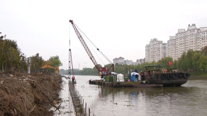 10月16日上午,在如泰運河北側(文江橋至鎮海路段)綜合整治項目現場,施工人員正在進行擋墻打樁、掛板施工以及擋墻壓頂模板制作。該河段長約700米,過去為塊石擋墻,由于建成時間較長,長期受行船波浪沖刷,擋墻多處坍塌。這次整治,將采用方樁、掛板作為基礎,同時澆筑鋼筋混凝土擋墻。沿河還將新建一條2米寬的健身步道,方便市民觀光娛樂。“擋墻施工大約在11月中旬結束,然后進行人行步道施工,力爭在11月底全部結束。”項目安全員何愛存說。