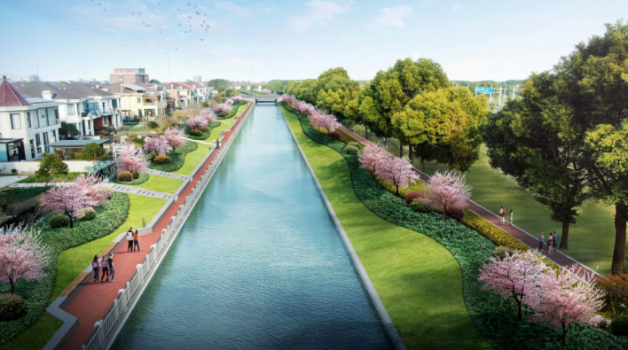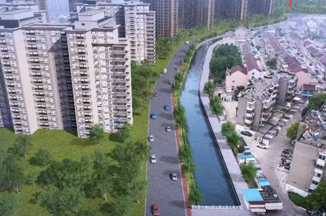 (項目效果圖) 朱莊河綜合整治工程則是另一項重要項目,它東起潤泰路,西至濟川路,全長約700米,河寬約12米。由于過去河道淤積,河床升高,影響了水體流動和水質(zhì)改善。此次改造中,施工單位在全面清淤河道的同時,還拆除了存在坍塌現(xiàn)象的駁岸擋墻并進行了重建。目前,整治工程已進展過半,預計年底前將全面完成。