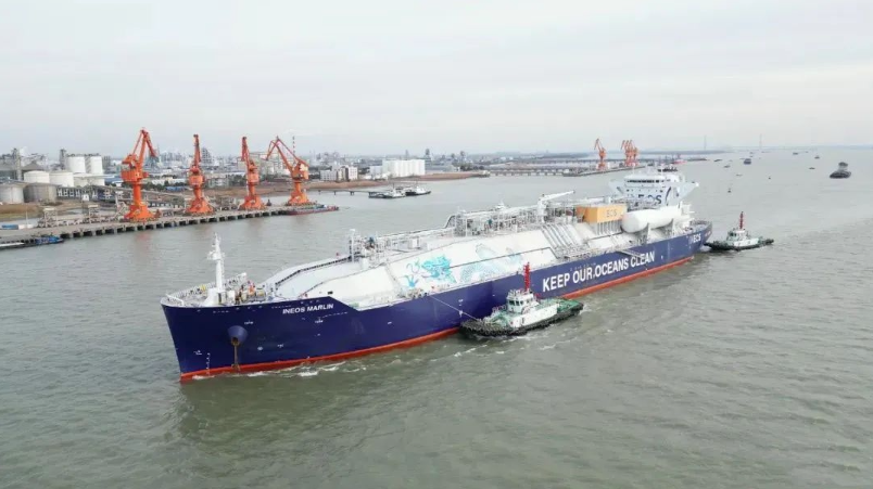 1月9日下午,2025年首艘5萬GT乙烷運輸船——英力士“龍”型LNG多用途液化氣運輸——英刀士“刀船“INEOSMARLIN”輪順利靠泊我市新浦化工碼頭。該輪船長231.57米,寬36.6米,載重噸高達51312.5噸,擁有四個C型獨立貨艙,是全球乙烷運輸領域的“王者”。