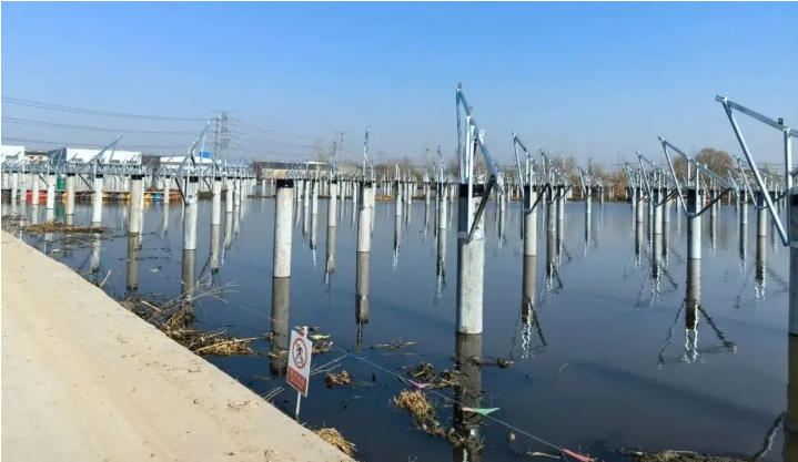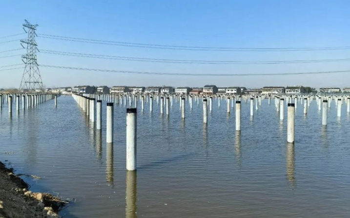 近日,隨著泰興市曲霞16MW魚塘水面光伏發(fā)電項(xiàng)目施工的進(jìn)行,項(xiàng)目初見雛形。未來,這里會形成水域上空安裝光伏板進(jìn)行發(fā)電,水下進(jìn)行漁業(yè)養(yǎng)殖,實(shí)現(xiàn)資源立體化利用。