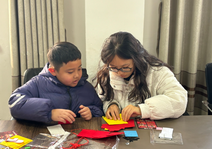 巧手繪“新”,點亮童心。“大家發(fā)揮想象,把你心中的春節(jié)畫出來好不好!”1月18日,在焦蕩社區(qū),志愿者焦振亞的這句話瞬間點燃了孩子們的熱情與靈感。他們拿起手中的畫筆,用色彩斑斕的畫表達自己對傳統(tǒng)佳節(jié)的理解和向往。與此同時,在張橋鎮(zhèn)匡莊村未成年人活動室內(nèi),志愿者正帶領(lǐng)小朋友們制作新年鞭炮掛飾。小朋友在志愿者的幫助下,一串串漂亮喜慶的鞭炮掛飾紛紛制作完成。孩子們高舉自己的作品,臉上洋溢著自豪的笑容,整個活動室都充滿了歡聲笑語。