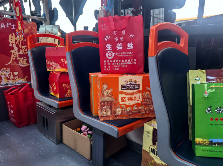 2024年末,泰興泰通公交公司探索“公交+商貿(mào)”新模式,全面布局新媒體領(lǐng)域,構(gòu)建宣傳矩陣,推出“乘公交、游泰興”系列短視頻,全網(wǎng)點(diǎn)擊量破20萬(wàn)。“年貨巴士”是“乘公交、游泰興”新年專題項(xiàng)目,主要滿足廣大群眾對(duì)價(jià)廉物美年貨的需求,并提供送貨上門服務(wù)。依托公交線路覆蓋范圍廣、班次密度高等優(yōu)勢(shì),泰通公交公司與各大供應(yīng)商洽談年貨產(chǎn)品價(jià)格,確保物美價(jià)廉。公交車內(nèi)年貨琳瑯滿目,不僅涵蓋了銀杏晶、黃橋燒餅、黃橋肉渣、曲霞湯包、宣堡生姜絲等泰興特產(chǎn),還有花生、瓜子、開(kāi)心果等堅(jiān)果類食品,以及公交員工自己設(shè)計(jì)制作的精美手工擺件。