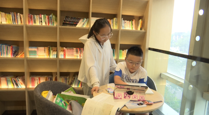 7月9日上午,泰興市新時代文明實踐中心的城市書房內,學生周玉湘正和弟弟一起閱讀學習。館內清涼靜謐,筆尖劃過紙張的沙沙聲,取代了街頭的蟬鳴喧囂,成了這里最動聽的旋律。“爸爸媽媽要上班,沒時間照顧我們,所以就來這里寫作業。”周玉湘說,“這里很安靜,還能讀到很多書。”