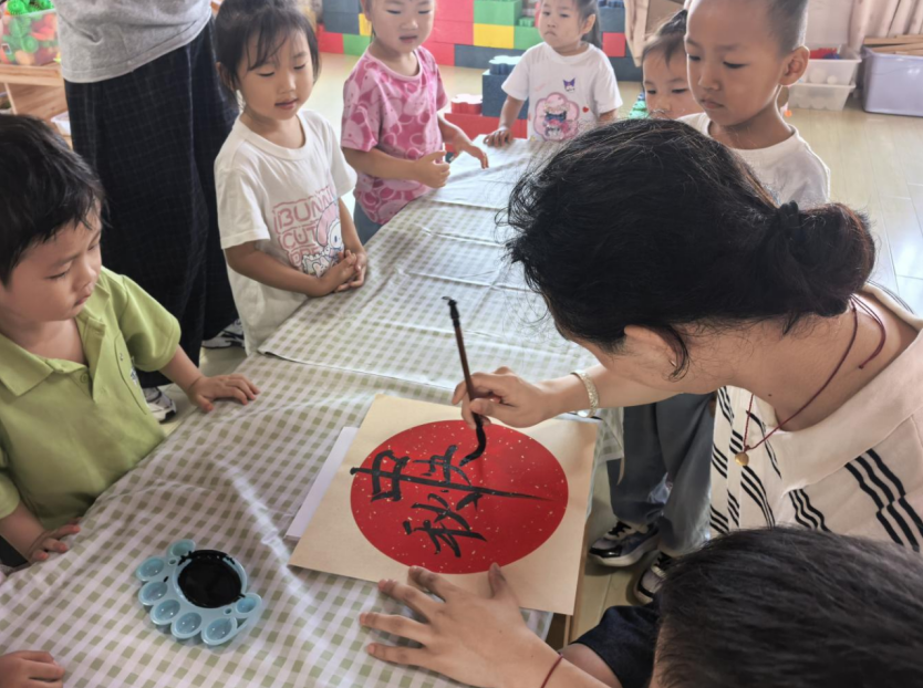 執(zhí)筆寫意傳文化,稚子歡顏迎佳節(jié)。在紅石榴家園——廣陵中心幼兒園里,一場融合傳統(tǒng)文化的特別活動(dòng)熱鬧開場,小朋友歡聚一堂,現(xiàn)場滿是歡聲笑語。“筆墨傳情迎中秋”環(huán)節(jié)精彩紛呈。卞一鳴老師手持毛筆,在紙上瀟灑揮毫,筆走龍蛇間,“中秋快樂”“闔家團(tuán)圓”“花好月圓”等祝福語躍然紙上,剛勁有力的字跡引得孩子們陣陣驚嘆。小朋友們圍在桌旁,眼睛緊緊盯著老師的筆尖,好奇地觀察運(yùn)筆技巧,有的還伸出小手,模仿起書寫姿勢,模樣十分可愛。隨后,老師將寫滿祝福的卡片贈(zèng)予小朋友,還耐心地講解起中秋習(xí)俗,讓孩子們在歡樂中感受傳統(tǒng)文化的魅力。