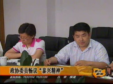 有的委員認為,泰興精神應該充分障顯泰興人的優點,可以結合銀杏的精神、東進精神,有的建議用"和諧、文明、團結、奮進"。有的建議用"求實求精,創特創新,爭先爭優,和氣和諧"。有的委員則提出,泰興精神必須成為行動指南,落到實處。