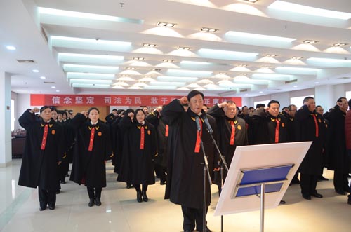 (記者 祝朝暉)元月3日,泰興市人民法院舉行入額法官憲法宣誓儀式。在院黨組書記、院長楊旭波的帶領下,全體入額法官面向國旗莊嚴地舉起右拳,用錚錚誓言做出人民法官的莊嚴承諾。 該院自司法改革法官入額工作啟動以來,經過報名、資格審查、考核、考察、審議、公示等程序,嚴格遴選入額法官,最終經省高院確定該院62名具有較高的法律素養、審判工作經驗和履職能力較強的法官首批入額。