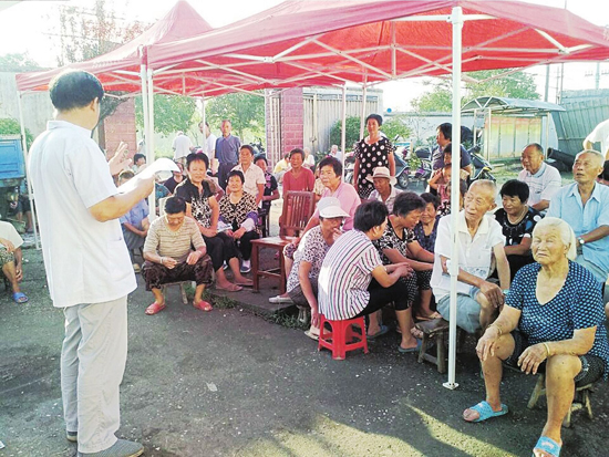 (記者 胡新芳 通訊員 郭美娟 尹振雄)近期,呼吸道疾病高發(fā)。日前,分界鎮(zhèn)南周村衛(wèi)生服務(wù)站站長(zhǎng)趙道清了解到前來(lái)就診村民較多的情形,就自己借來(lái)遮陽(yáng)蓬,利用早晨時(shí)間給農(nóng)戶講解夏日治病、防病的相關(guān)注意事項(xiàng)。他表示,這樣的活動(dòng)將一個(gè)月至少舉行一次,通過(guò)向群眾免費(fèi)講解常見疾病、季節(jié)性疾病以及一些慢性病的防治,提升村民身體素質(zhì)。