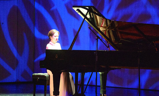 “少小離家,求學京滬,一路追尋音樂之夢想。今日返鄉,以肖邦經典匯報鄉梓父老,以樂表琴心一片。”長達2個小時的演出,朱瞳瞳技驚四座:手指在黑白琴鍵上不斷地跳躍,唯美的琴聲從指尖傾瀉而下,她似乎將觀眾帶到了肖邦那個時代,盡情訴說著關于愛情與人生的故事。演奏的過程中,篇章之間的轉換非常流暢,觀眾也頗具音樂素養,總會在合適的地方報以熱烈的掌聲。此次音樂會,不僅是朱曈曈在家鄉第一次舉辦個人音樂會,更是她與“音樂詩人”肖邦無限靠近的指尖之旅,無數人碰觸過的經典,都從這位未來的“鋼琴皇后”手指下流淌,呈現出不一樣的解讀與詮釋。