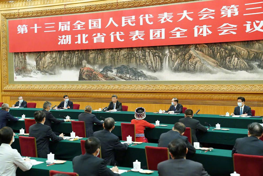 5月24日,習(xí)近平參加湖北代表團(tuán)審議。新華社記者 李學(xué)仁 攝 根據(jù)疫情防控最新形勢(shì),黨中央適時(shí)作出了疫情防控常態(tài)化的重大判斷。 此次在湖北代表團(tuán),習(xí)近平總書記進(jìn)一步指出:要全力做好常態(tài)化疫情防控工作,堅(jiān)持常態(tài)化精準(zhǔn)防控和局部應(yīng)急處置有機(jī)結(jié)合,加強(qiáng)社區(qū)精準(zhǔn)防控,擴(kuò)大檢測(cè)范圍,不斷鞏固疫情防控成果。 當(dāng)前,境外疫情擴(kuò)散蔓延勢(shì)頭仍然沒有得到有效遏制,國內(nèi)個(gè)別地區(qū)聚集性疫情仍然存在,湖北有時(shí)還出現(xiàn)散發(fā)零星確診病例,無癥狀感染者每天還有新增。 “針尖大的窟窿能漏過斗大的風(fēng)。”總書記用這句俗語,意在提醒大家,不能放松警惕、麻痹大意,要時(shí)刻繃緊疫情防控這根弦。 正如總書記強(qiáng)調(diào)的:“慎終如始、再接再厲,持續(xù)抓好外防輸入、內(nèi)防反彈工作,決不能讓來之不易的疫情防控成果前功盡棄。” 02/搶時(shí)間:把政策優(yōu)勢(shì)轉(zhuǎn)化為發(fā)展優(yōu)勢(shì) 作為全國疫情最重、管控時(shí)間最長的省份,湖北經(jīng)濟(jì)重振面臨較大困難。 對(duì)于這個(gè)現(xiàn)實(shí),總書記是這么看的:湖北經(jīng)濟(jì)長期向好的基本面沒有改變,多年積累的綜合優(yōu)勢(shì)沒有改變,在國家和區(qū)域發(fā)展中的重要地位沒有改變。