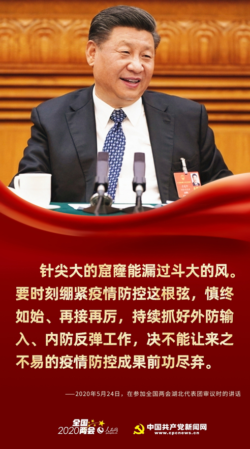 1月25日,中央政治局常委會會議決定,黨中央向湖北等疫情嚴重地區派出指導組,推動有關地方全面加強防控一線工作。 “指導組有什么情況、有任何需要,可以打電話直接和我說。”習近平日夜牽掛湖北、武漢的疫情,對中央指導組先后作出上百次重要指示,為有效指導疫情防控提供了根本遵循。 如今,經過艱苦卓絕的努力,武漢保衛戰、湖北保衛戰取得了決定性成果。但當前,境外疫情擴散蔓延勢頭仍然沒有得到有效遏制,國內個別地區聚集性疫情仍然存在,湖北有時還出現散發零星確診病例。 大考仍在繼續。 “針尖大的窟窿能漏過斗大的風。”在湖北代表團審議現場,習近平強調,要時刻繃緊疫情防控這根弦,慎終如始、再接再厲,持續抓好外防輸入、內防反彈工作,決不能讓來之不易的疫情防控成果前功盡棄。 “我們以人民為中心、生命至上。這次戰疫考驗著各級黨委政府和廣大黨員的政治品格和能力作風。”習近平指出,“現在湖北各方面工作任務很重、困難很多,但是我們比較一下疫情突發階段所遇到的困難,目前的困難應該說不算什么了。” 習近平總書記叮囑湖北廣大黨員干部,要緊緊依靠人民,發揚在疫情防控斗爭中展現的精神面貌,真抓實干,奮力拼搏,要堅決反對形式主義、官僚主義,敢于負責、敢于斗爭、敢于克服困難去取得新的更大的勝利。 “經歷了這場磨難的湖北、武漢一定能夠浴火重生”