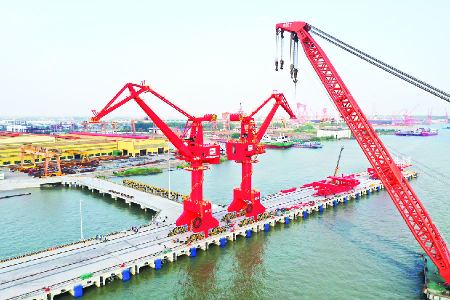 6月4日,由中鐵建港航局泰興港務有限公司投資建設運營的泰興港區七圩公用碼頭門機設備安裝圓滿完成,碼頭現場亮出紅色風景線。該碼頭作為中國鐵建首個自主建設運營的碼頭,開港運營后將充分發揮中國鐵建品牌優勢,融入“長江經濟帶”及“長三角經濟圈”國家戰略,整合長三角特別是錫常泰貨物資源,實現江海大聯運,讓黃金岸線在保護性開發中實現“黃金效益”,助力地方經濟跨越發展。