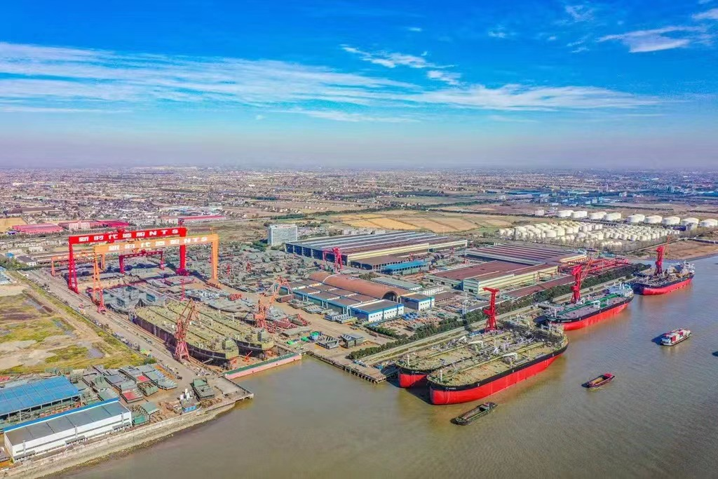 面對(duì)新冠疫情的沖擊和國(guó)際航運(yùn)市場(chǎng)的深刻變化,作為全國(guó)最大民營(yíng)造船基地、國(guó)家級(jí)船舶出口基地的江蘇省靖江市積極引導(dǎo)造船企業(yè)逆勢(shì)而上促生產(chǎn)、快人一拍謀發(fā)展,推動(dòng)造船產(chǎn)業(yè)乘風(fēng)破浪、行穩(wěn)致遠(yuǎn)。 迎難而上奮力爭(zhēng)訂單保交船 走進(jìn)江蘇新時(shí)代造船有限公司,處處可見(jiàn)熱火朝天的生產(chǎn)景象。在抓好疫情防控工作的基礎(chǔ)上,企業(yè)鉚足干勁,著力推進(jìn)生產(chǎn)建造,力保訂單交付,連日來(lái)順利完成210000噸散貨船、156500噸油船等多艘船舶的關(guān)鍵生產(chǎn)節(jié)點(diǎn)。“今年我們的接單量特別在雙燃料船接單方面成果喜人,已經(jīng)提前完成全年的接單任務(wù),在手訂單87艘,載重噸約1120萬(wàn)噸,排產(chǎn)到了2026年。”企業(yè)營(yíng)銷部部長(zhǎng)陳亞軍表示,雙燃料船訂單主要集中在210000噸散貨輪,8000TEU和11400TEU集裝箱船。