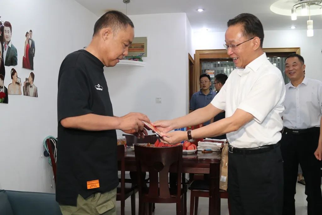 在中國(guó)人民解放軍建軍95周年之際,7月26日,市委書記張坤走訪慰問優(yōu)撫對(duì)象,代表市委、市政府送去黨的關(guān)心和關(guān)愛,讓他們共享改革發(fā)展成果。市委常委、政法委書記王建武參加。 一級(jí)視力傷殘軍人曹明建今年56歲,患尿毒癥,常年透析治療。張坤關(guān)切地詢問了他的身體情況、家庭成員、子女就業(yè)、收入來源以及政策保障落實(shí)等情況,并送上了慰問金,叮囑他一定要保重身體,堅(jiān)強(qiáng)面對(duì)生活。 張坤指出,各級(jí)黨委、政府和有關(guān)部門要切實(shí)關(guān)心關(guān)愛優(yōu)撫對(duì)象,不折不扣把各項(xiàng)優(yōu)撫政策落實(shí)到位,為他們提供細(xì)致周到的服務(wù),積極幫助他們解決好生活中的實(shí)際困難和問題,不斷提高服務(wù)保障水平,讓他們充分感受到黨和政府的關(guān)懷與溫暖。 今年58歲的陳同山為一級(jí)傷殘軍人,家中還有一位82歲的老母親。張坤來到老人家中,關(guān)切詢問家庭生活和身體情況,感謝他曾經(jīng)為黨和人民作出的貢獻(xiàn),并送上節(jié)日祝福以及慰問金,同時(shí)叮囑街道及社區(qū)工作人員,要及時(shí)幫助生活困難退伍軍人解決實(shí)際困難,以更貼心的服務(wù)做好擁軍優(yōu)屬工作,使他們更多地享受經(jīng)濟(jì)社會(huì)發(fā)展的成果,切實(shí)增強(qiáng)退役軍人的榮譽(yù)感、歸屬感、獲得感。 為加深軍民魚水情,切實(shí)讓烈士遺屬們感受到黨和政府的關(guān)愛,在“八一”建軍節(jié)來臨之際,7月27日,市委副書記、市長(zhǎng)劉文榮來到姚王街道,走訪慰問部分烈屬,表達(dá)對(duì)烈士的崇高敬意和對(duì)烈屬的關(guān)愛之情。 作為烈屬,今年99歲高齡的翟和英老人無兒無女,在街道的幫助下,不僅可以在親戚家居住,也可來到養(yǎng)老院安度晚年。劉文榮與其親屬深入交談,了解老人飲食起居和健康情況。 劉文榮指出,革命烈士為革命事業(yè)所作出的貢獻(xiàn)和犧牲,黨和政府會(huì)永遠(yuǎn)銘記,更不會(huì)忘記革命烈士家屬。親屬要用真心真情細(xì)心照料烈屬的飲食起居,切實(shí)關(guān)注烈屬的身體健康和精神生活,讓其享有更高質(zhì)量的晚年生活。街道也要落實(shí)好各項(xiàng)優(yōu)撫政策,多為烈屬辦實(shí)事、辦好事,解決后顧之憂,真正把黨和政府的溫暖關(guān)懷落到實(shí)處。 “最近身體怎么樣?生活上有什么困難?”在92歲高齡的烈屬趙愛仙家中,劉文榮與其敘家常、問冷暖,對(duì)革命烈士為黨和國(guó)家的無私奉獻(xiàn)表示欽佩,對(duì)烈屬表示慰問,并傾聽烈屬訴求,了解烈屬的家庭生活、身體健康以及撫恤政策落實(shí)等情況,囑咐老人保重身體,并表示黨和政府會(huì)一如既往地給予關(guān)心和幫助。各相關(guān)單位要關(guān)心關(guān)愛烈士遺屬,常上門看看、照顧好烈士遺屬生活,讓他們切身感受到黨和政府的溫暖,更好地倡導(dǎo)和弘揚(yáng)烈士精神。 |