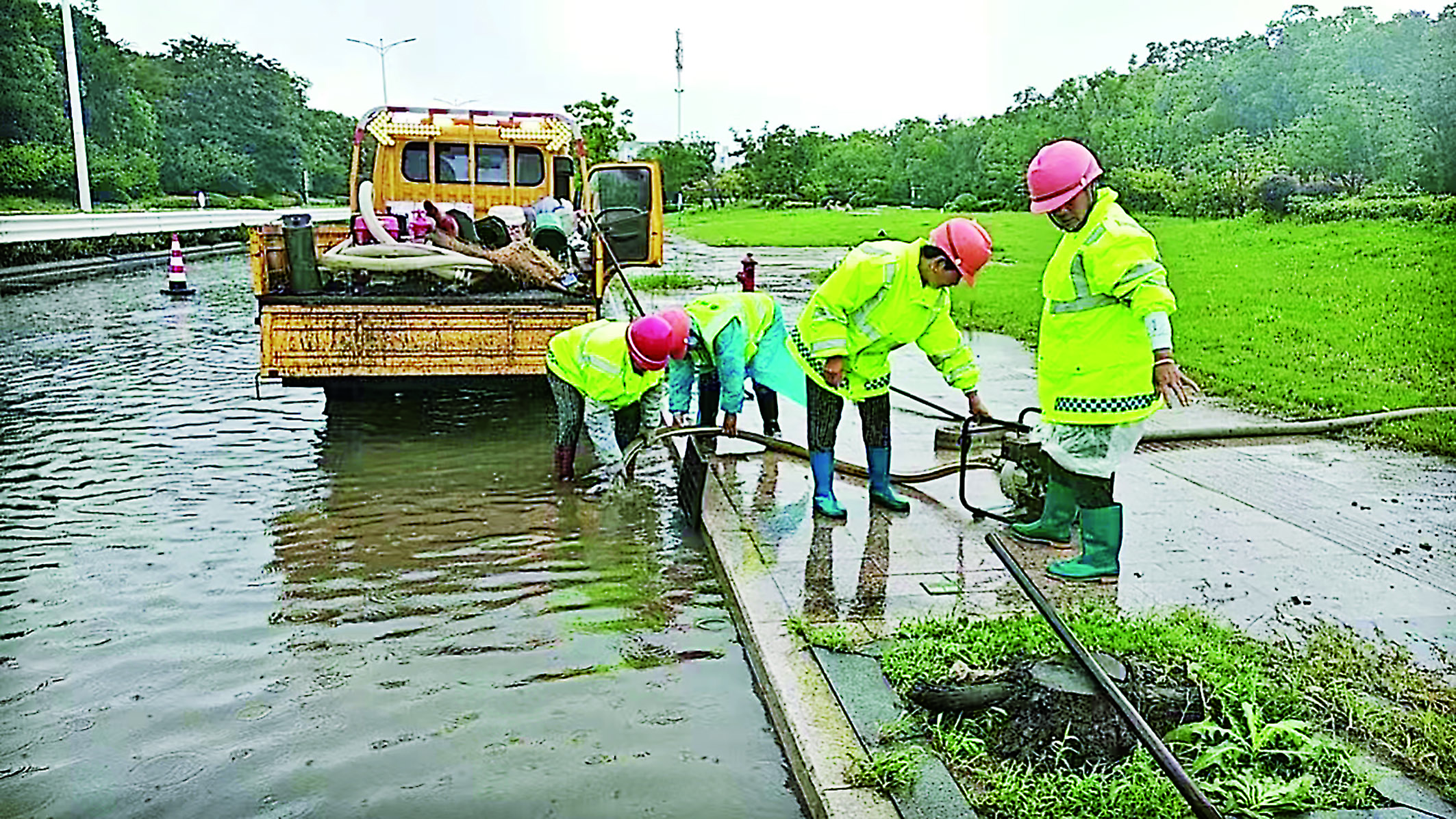 自7月9日晚開始,泰州市經(jīng)歷了一輪強降雨,局地特大暴雨。泰州市啟動防汛IV級應(yīng)急響應(yīng),各地各單位積極行動,共同筑牢防汛防線。強降雨期間,主城區(qū)地道橋、路段均正常通行,沒有出現(xiàn)嚴(yán)重積水現(xiàn)象,道路通行通暢,城市交通秩序井然。 巡查、排險全覆蓋 強降雨期間,泰州市公路事業(yè)發(fā)展中心通過視頻監(jiān)控+人工巡查相結(jié)合的方式,加大對821公里普通國省道和74公里快速路的巡查頻次。路網(wǎng)中心每2小時完成一次全覆蓋視頻巡查,16支公路應(yīng)急處置隊伍24小時在崗值守,對轄區(qū)公路進行全覆蓋不間斷動態(tài)巡檢、處置。截至記者發(fā)稿時,共出動人員156人次,巡查車170車時,機械設(shè)備2臺次,處置排水作業(yè)11起,完成處置11起。全市66處易積水點位、3座隧道、6處下穿均無積水,通行正常。 清理雨水井口雜物