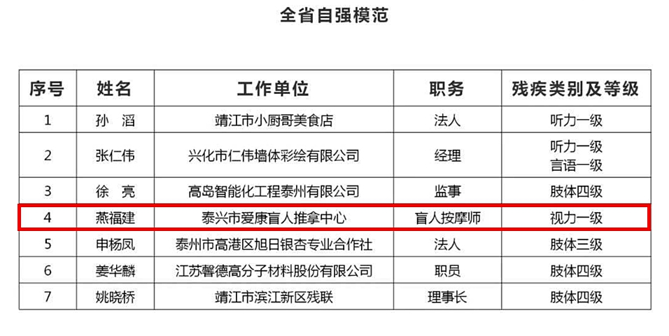內(nèi)附:泰州市全省自強模范暨助殘模范擬正式推薦對象名單及簡介